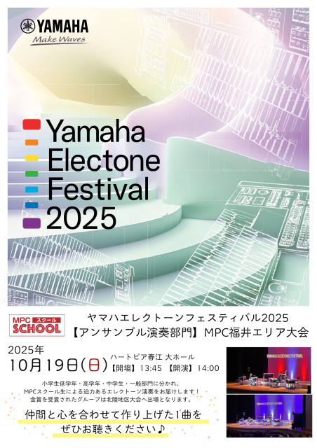 《 ヤマハエレクトーンフェスティバル 2025 アンサンブル演奏部門 MPC福井エリア大会 》を開催いたします✨